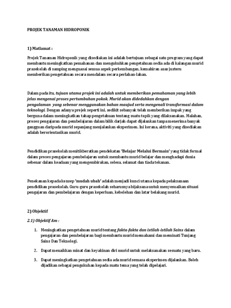 Kertas Kerja Projek Tanaman Hidroponik Pdf